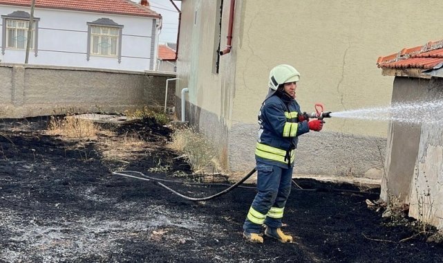 Konya'nın Kulu ilçesinde, müstakil evin bahçesindeki ot yangını, ev ve müştemilata zarar vermeden itfaiye tarafından söndürüldü.