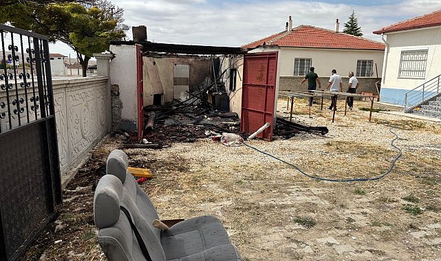 Konya'nın Kulu ilçesinde bir evin bahçesinde bulunan garajda çıkan yangın itfaiye tarafından söndürüldü.
