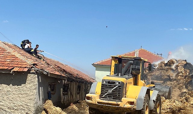 Konya'nın Kulu ilçesinde çıkan yangında saman balyaları yanarak zarar gördü.