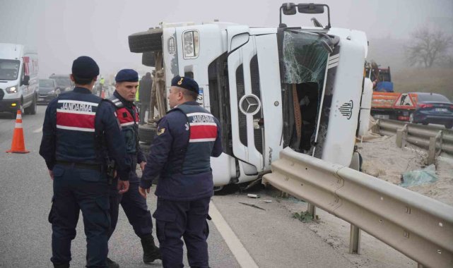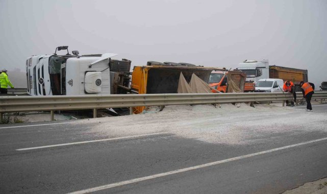 Edinilen bilgiye göre, M.D. idaresindeki 42 ABJ 033 plakalı kum yüklü hafriyat tırı, Edirne-Havsa yolunda sürücünün direksiyon hâkimiyetini kaybetmesi sonucu yan yattı. Dorsedeki kum yola saçılırken, kazanın önünde arızalanan bir araca çarpmamak için yapılan ani manevra nedeniyle meydana geldiği öğrenildi.