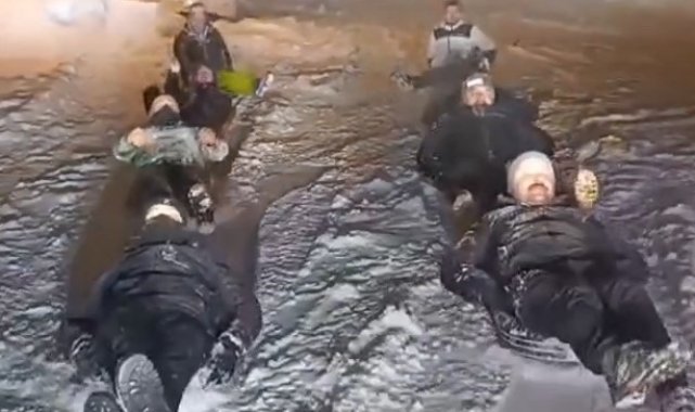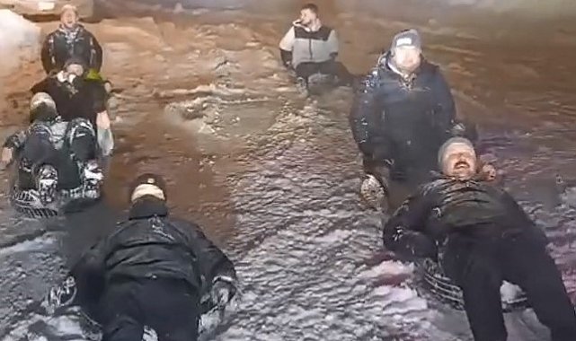 Giresun'un Dereli ilçesine bağlı Kümbet Yaylası'nda adrenalin dolu anlar yaşandı. Bir grup genç, arazi aracının arkasına bağladıkları sekiz lastiğe binerek kar rafting yaptı. Görüntüler, sosyal medyada büyük ilgi gördü.