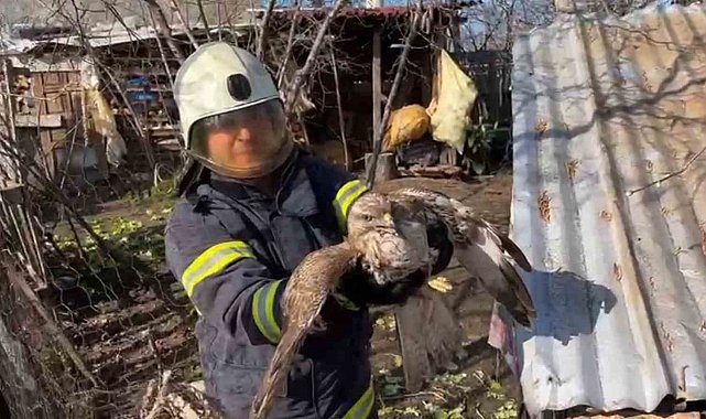Ordu'nun Ünye ilçesinde Büyükşehir Belediyesi itfaiye ekipleri, girdiği kümeste mahsur kalan yırtıcı kuş doğanı kurtardı.