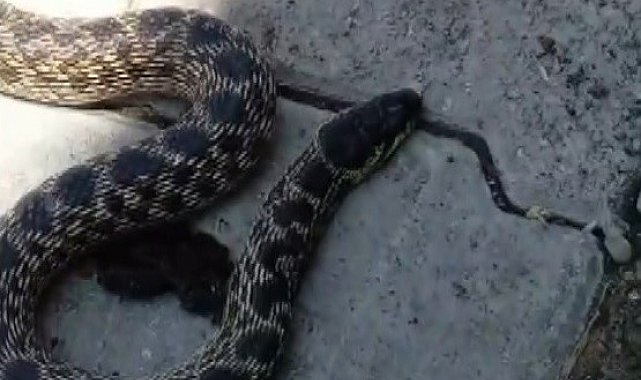 Erzincan'ın Tercan ilçesine bağlı Küllüce köyünde kümesteki yumurtaları yiyen yılanı yakalayan vatandaş doğaya saldı.