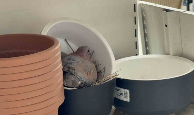 Olay, Bahçeşehir Bağlantı Yolu üzerindeki bahçe ürünleri satışı yapılan bir işletmede yaşandı. Dükkanın dış kısmında sergilenen bir saksının içine kumru yuva yaptı. İşletmeden saksı almak isteyen vatandaşların fark ettiği yuva üzerine işletme, saksı satışını geçici olarak durdurdu.