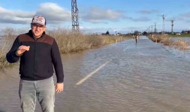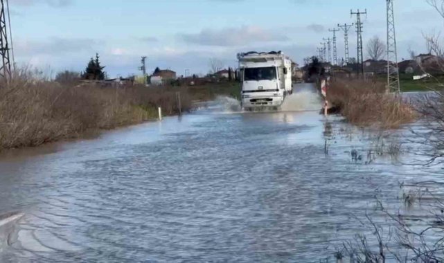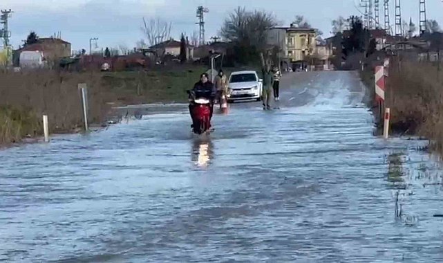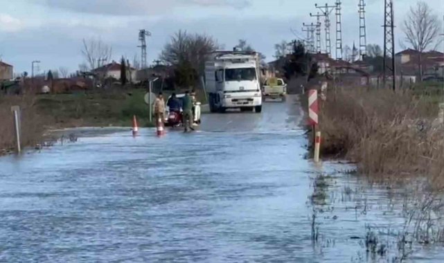 Edirne'nin Meriç ilçesinde, Meriç Nehri'nin taşması sonucu Küplü Beldesi ile Adasarhanlı arasındaki karayolu sular altında kaldı.