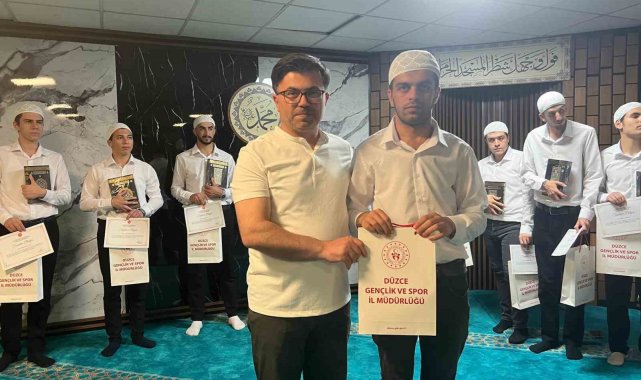 Düzce Gençlik ve Spor İl Müdürlüğü bünyesinde bulunan KYK yurtlarında kalan öğrencilere Düzce İl Müftülüğü'nün de destekleri ile Kur'an-ı Kerim kursu açıldı. Dönem başından beri kurslara katılan öğrencilerden Kur'an-ı Kerim okumayı öğrenen öğrencilere hediyeler takdim edildi. Programa Müftü Osman Aydın ve Gençlik ve Spor il Müdürü İsa Yazıcı katılarak gençlere hediyelerin yanı sıra sertifika da takdim etti.