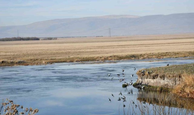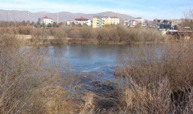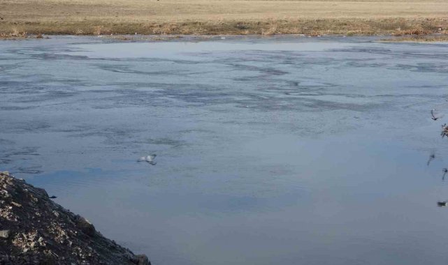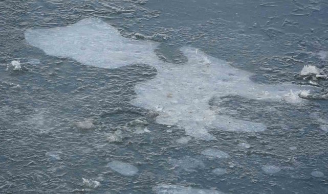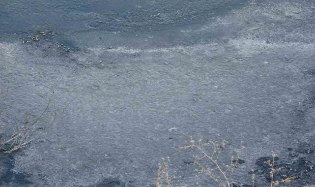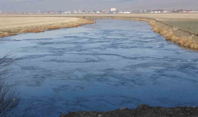 Ardahan'da etkili olan soğuk hava nedeniyle Kura Nehri'nin yüzeyi dondu.