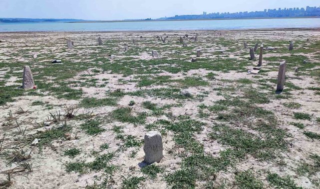 Adana'da 70 yıl önce Seyhan Barajı Gölü'nün altında kalan Topalak Mahallesi mezarlığı, kuraklık nedeniyle sular çekilince yeniden ortaya çıktı. Vatandaşlar yıllar sonra mezarlığa gidip dua etti.