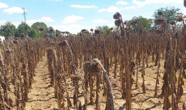 Trakya'da ayçiçeği tarlaları bu yıl sararmadan soldu. Kuraklığın etkisiyle son üç yıldır yağışsız geçen mevsimler ve artan sıcaklıklar, ayçiçeğinde verimi düşürdü.