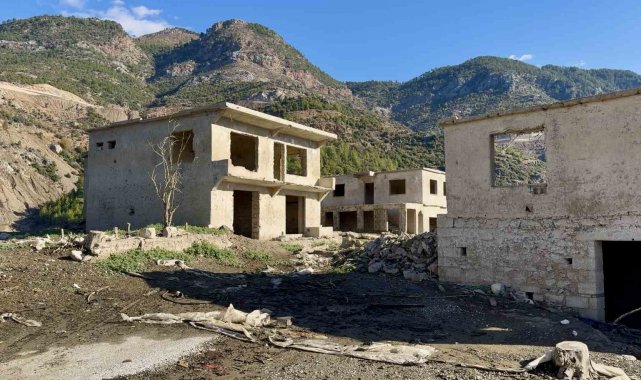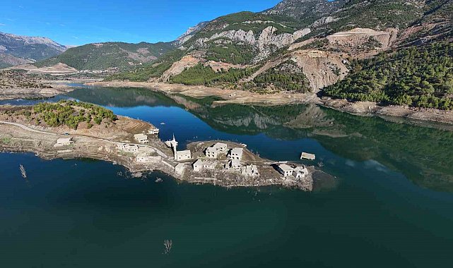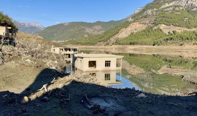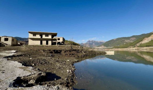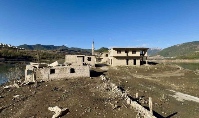 Mersin'in Anamur ilçesinde bulunan Alaköprü Barajı'nda bölgede yaşanan kuraklık nedeniyle su yaklaşık yüzde 80 oranında azaldı 11 yıl önce baraja gömülen köy evleri ve cami tamamen ortaya çıktı.