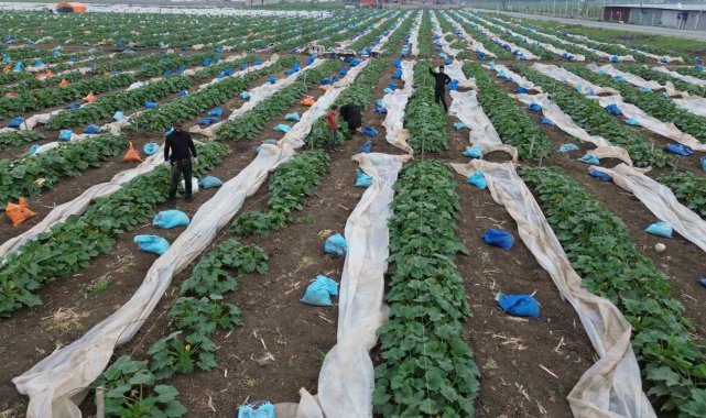 Hatay'da kuraklık ve don nedeniyle hasadına 15 gün geç başlanılan kabak, tarladan kilogram fiyatı 50 TL'den alıcı buluyor.