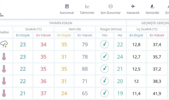 Meteoroloji Genel Müdürlüğü'nden alınan bilgiye göre, sabah saatlerinde etkili olacağı tahmin edilen gök gürültülü sağanak yağış öğleden sonra yerini rüzgârlı havaya bırakacak. Bursa'da günün en yüksek sıcaklığı 34 dereceye çıkması beklenirken, en düşük sıcaklık ise 23 derece tahmin ediliyor.