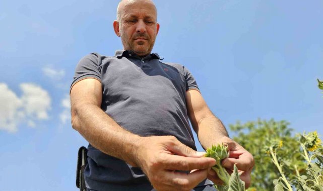 Üretici Erdal Akgün, "Ayçiçekleri çiçek açamadan kurudu. Biçerdöver çağırmaya bile gerek kalmayacak hale geldi" ifadelerini kullandı.