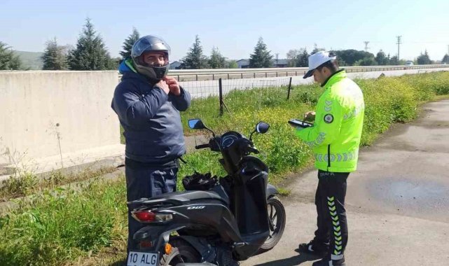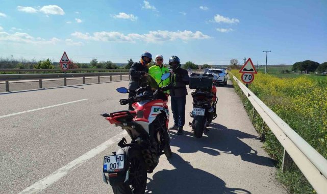 Karacabey Bölge Trafik Denetleme İstasyon Amirliği ekipleri, Bursa-İzmir karayolu üzerinde motosiklet sürücülerine yönelik denetimler gerçekleştirdi. Yapılan uygulamada kurallara uymayan sürücülere 52 bin 853 TL cezai işlem uygulandı.