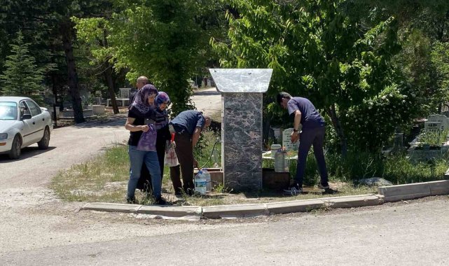 Eskişehir'de vatandaşlar Kurban Bayramı öncesi sabah saatlerinden itibaren Eskişehir Büyükşehir Belediyesi Asri Mezarlık'ına gitti. Vefat eden yakınlarını mezarlarının başında dua eden vatandaşlar, arefe gününü dua ederek değerlendirdiler. Merhumlar için edilen duaların ardından vatandaşlar, mezarlara bakım yapıp çiçekler bıraktı.