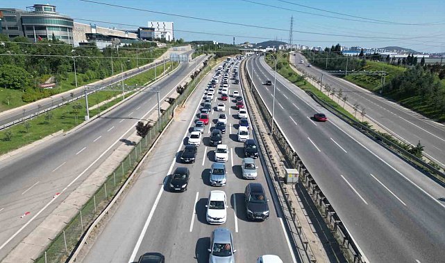 Bayram tatilinin sona ermesiyle dönüş yoluna çıkan vatandaşlar, Kocaeli'deki otoyol ve ana yollarda kilometrelerce trafik kuyruğu oluşturdu. Oluşan trafik, havadan görüntülendi.
