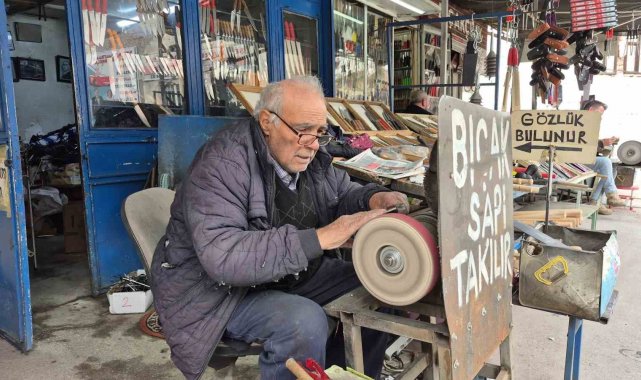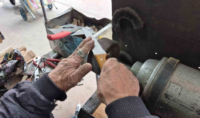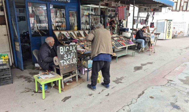 İşlerin durumuyla ilgili konuşan Erhan Erdoğan, "İşler yavaş yavaş hızlanmaya başladı. Tabii mayıs ayında acayip yoğunlaşırız, işler bayram sonuna yoğun devam eder. Bıçak bilerken, eldeki malzemenin güzel olması, senin de malzeme kadar güzel usta olman gerek. O zaman her şey güzel olur. Bilerken bıçağın ağzını tamamen dikmeyeceksin; diktiğin zaman bıçağın ağzının yarısını götürür. Bilmeyen vatandaşın evde bıçak bilemesi uygun değil. Bilen belki yapabilir ama bilmeyen bıçağı bozar. Vatandaş evinde ne kadar bıçak varsa toplayıp bize geliyor. Mesela geçen Bilecik'ten bir torba geldi, içerisinde 27 tane bıçak var. Bunlar da kurbancı, kurban kesiyorlar, her sene gelirler. Bıçak başı 40-50 TL'ye bileme yapıyoruz" dedi.