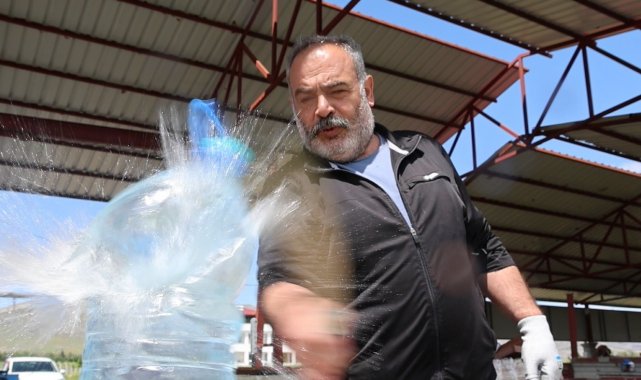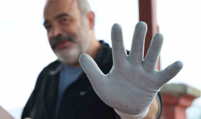 Koruyucu ekipmanların önemini göstermek isteyen Çopur, eline taktığı kesilmez eldiveni bıçakla test etti. Ardından 5 litrelik su dolu bidonu ve kalın kağıtları keskin bıçağıyla kolayca kesti. O anlar ise kameraya yansıdı.