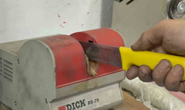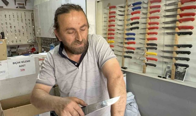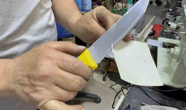 Evlerde kullanılan eski bıçakların da bilenmesi gerektiğini dile getiren Özkurt, "Bileme işini biz sulu bir şekilde yapıyoruz. Bıçağı yakmadan, zarar vermeden yapıyoruz. İlk alındığı gibi aynı keskinlikte müşterilerimize bıçakları teslim ediyoruz. Kurban hayvanlarının kafa kesme bıçağı ayrı, yüzme bıçağı ayrı, sıyırma bıçağı ayrı, parçalama bıçağı ayrıdır. Tek bıçak ile bütün işi yapılmaz. Çok profesyonel olan insanlar bile tek bıçak ile bütün işi yapmazlar. Deri yüzme bıçağı ayrı sıyırma bıçağı ayrıdır. Tek bıçak ile kesim yapmak sağlıklı değildir. Sıyırma bıçağı ile yapılan iş doğrama işini yapamaz. Her bıçağı kendi alanında kullanırsak daha sağlıklı iş yapmış oluruz daha randımanlı iş yapılmış olur" şeklinde konuştu.