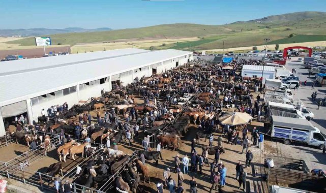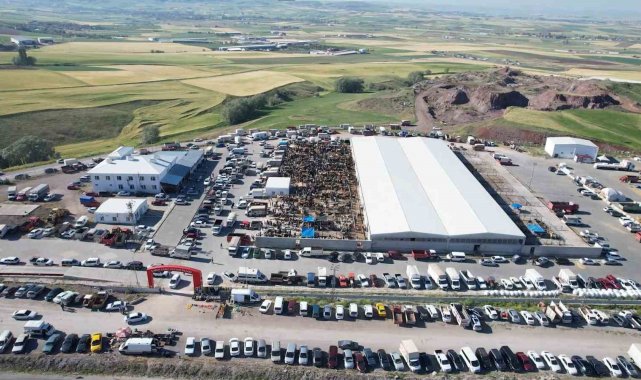 Kurban Bayramı dolayısıyla Ankara'nın Çubuk ilçesinde yer alan Canlı Hayvan Pazarı'ndaki yoğunluk, havadan görüntülendi.