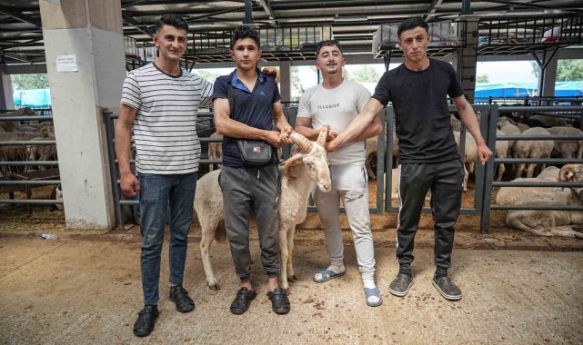 Kurban pazarının gözdesi...4 boynuzlu koçu görenler şaşırıyor