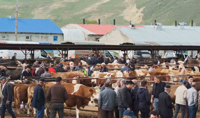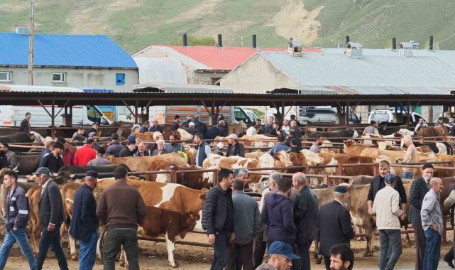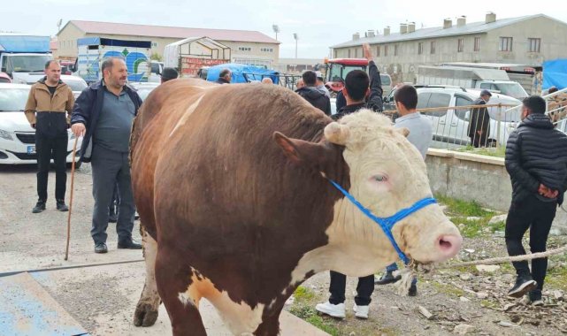 Erzurum'un Aşkale ilçesinde pazar günleri kurulan canlı hayvan pazarında yaklaşan Kurban Bayramı münasebetiyle kurbanlık hayvanlar da görücüye çıkmaya başladı.