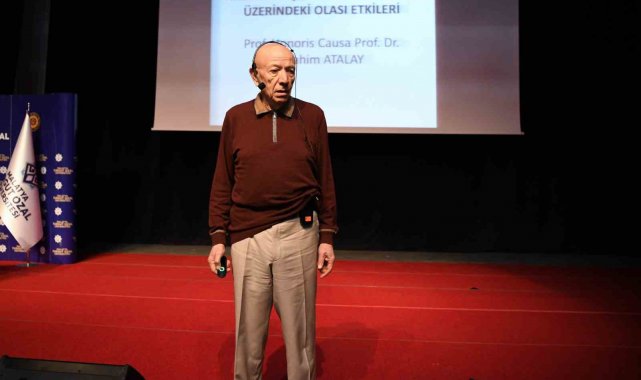 Prof. Dr. İbrahim Atalay ise küresel ısınma ve iklim değişikliğinin Türkiye'ye etkilerine yönelik sunumlarında Türkiye'deki güney ve kuzey cephelerinden, bu cephelerin yağış üretme ve düşürme potansiyeline dair bilgiler vererek, Türkiye hava atmosferinin sürekli bir değişim içerisinde olduğunu belirtti. Atalay, "Dünyada iklim değişmeleri var. Günümüzde mevsimler arasındaki değişikliklere iklim değişikliği demeyi tercih etmeyiz. Örneğin Orta Avrupa'da yağışta sıcaklık değişimi azken, bizim ülkemizde sıcaklıkta olmasa bile yağışlarda değişiklikler meydana gelir. Günümüzdeki iklim değişmelerinin temel sebebi karbondioksitten dolayı oluşan gazlardır. Sanayi devrimiyle birlikte havada karbondioksit artışı var. Bundan dolayı son 135 sene içerisinde dünyada sıcaklık bölgeden bölgeye değişmekle birlikte ortalama olarak bir derecenin üzerine çıktı. Bazı bölgelerde ise düşüş yaşandı. Bundan dolayı dünyada bir değişme var" şeklinde konuştu.