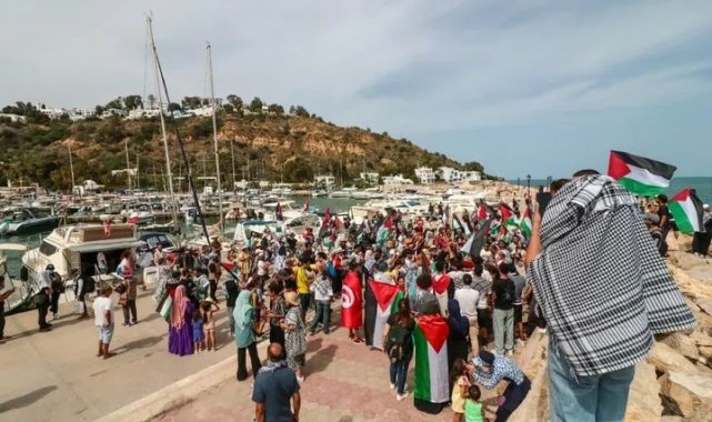 İspanya'nın Barcelona kentinden 31 Ağustos'ta yola çıkan filo, dün Tunus'a varmış ve binlerce kişi tarafından karşılanmıştı.
