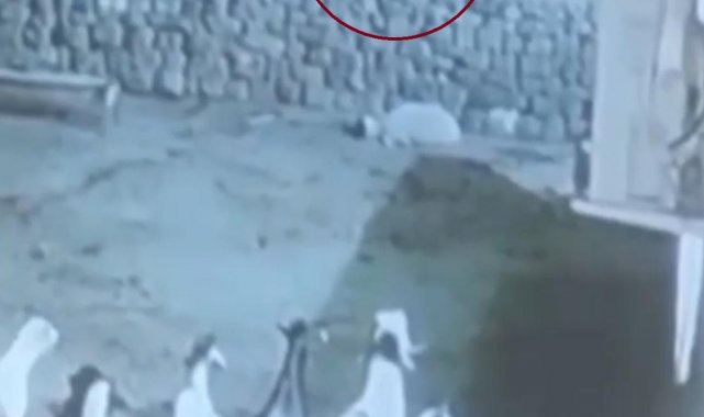 Diyarbakır'ın Çınar ilçesinde kurdun ağıldaki sürüye dalıp almak istediği koyunla mücadelesi güvenlik kamerasına yansıdı. Kurt, kaptığı koyunu duvarın üstünden çıkartamayınca ölü taklidi yapan koyundan vazgeçti.