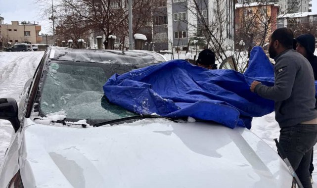 Siirt'in Kurtalan ilçesinde çatıdan düşen kar kütlesi bir otomobili kullanılmaz hale getirdi.