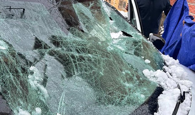 Kurtalan'da çatıdan düşen kar kütlesi aracı kullanılamaz hale getirdi