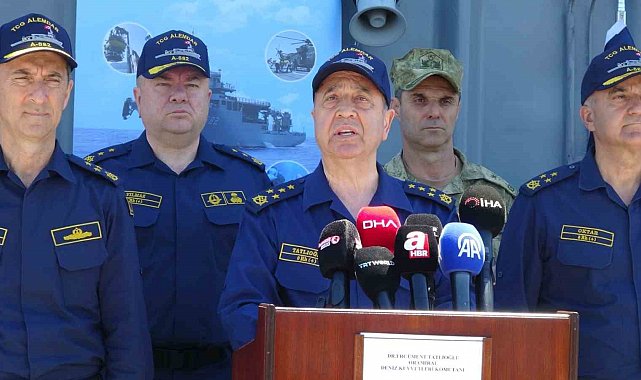 Türkiye Cumhuriyeti Deniz Kuvvetleri Komutanı Oramiral Ercüment Tatlıoğlu Aksaz açıklarında 15-21 Nisan 2026 tarihleri arasında icra edilen Kurtaran-2026 Denizaltı Arama Kurtarma Davet Tatbikatı kapsamında TCG Alemdar gemisinde basın mensuplarına açıklamalarda bulundu.