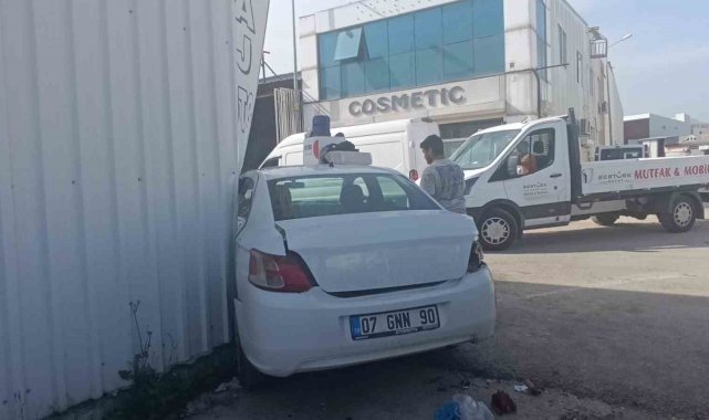 Forkliftin çarptığı otomobil çarpmanın şiddetiyle işyerinin tabelasına zarar verirken, yolda ve araç içerisinde kimsenin olmaması yaşanılabilecek bir facianın önüne geçmiş oldu.
