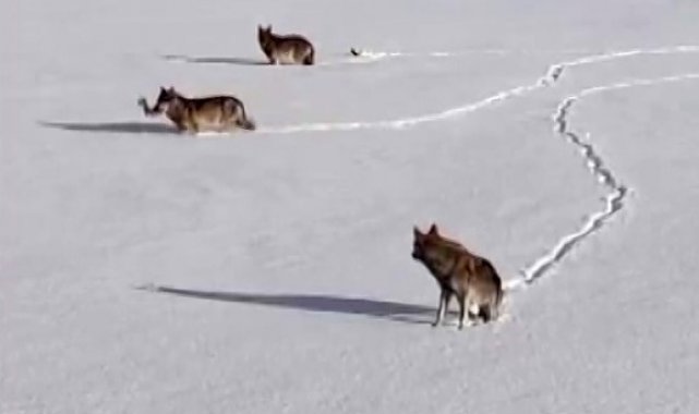 Özellikle Doğu Anadolu'da etkisini artıran soğuk hava dalgası sonrası doğada yaşam mücadelesi veren yaban hayvanlarının görüntülenmesi, kışın çetin yüzünü bir kez daha gözler önüne serdi. Karlı zeminde iz bırakarak ilerleyen kurtların bir süre sonra gözden kaybolduğu gözlendi.