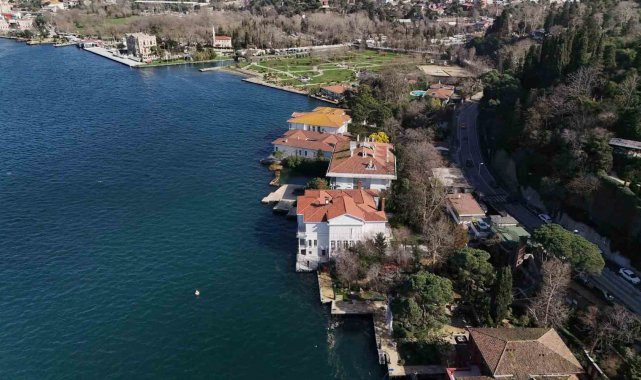 Dronla havadan çekilen görüntülerde yalının denize sıfır konumu ve geniş rıhtımı net şekilde görüldü. Üst açıdan yapılan çekimlerde simetrik pencere düzeni, cumbalı bölümleri ve Boğaz'a açılan geniş terası dikkat çekti. Yalının hemen yanında bulunan müştemilat ve arka bahçedeki ağaçlık alan da görüntülere yansıdı. Sahil hattı boyunca uzanan iskele ve mermer rıhtım bölümü ise yapının tarihi kimliğini gözler önüne serdi.