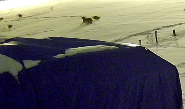 Sivas'ta aç kalan 6 kurt, bir çiftlikteki köpeğe saldırdı. Kurtların saldırdığı köpekten geriye sadece postu kaldı. Kurtların köpeğe saldırdığı anlar, güvenlik kamerasına yansıdı.