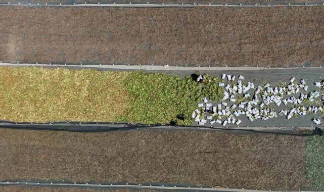 Kurutulmaya bırakılan tütünler, tarım arazilerini renklendirdi
