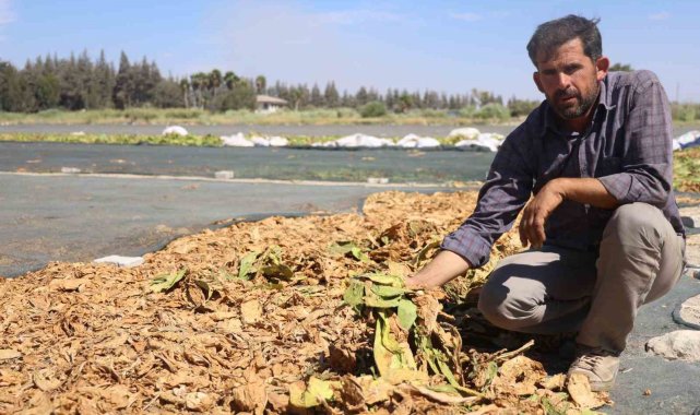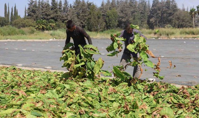 HATAY (İHA) – Türkiye'nin tarım merkezlerinden olan Hatay'da 40 dereceyi bulan kavurucu sıcakta kurutulmaya bırakılan tütünler, tarım arazilerini renklendiriyor. Sıcağa rağmen çalışmak zorunda olan çiftçiler ve işçilerse, zorlu şartlarda mesaiyi sürdürüyorlar.