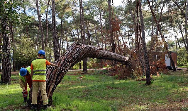 Muğla Orman Bölge Müdürlüğü tarafından yürütülen çalışma kapsamında, risk taşıyan ağaçlar hem havadan dron kamerası ile hem de yer ekipleri tarafından belirlenerek işaretleniyor. 2024 yılındaki gibi benzer kazaların yaşanmaması amacıyla kamp alanı içinde detaylı bir tarama yapılıyor.