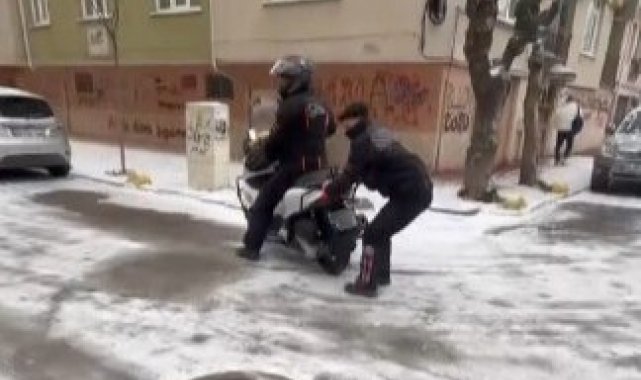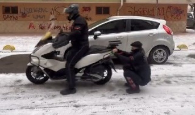 Hava sıcaklıklarının eksi derecelere düşmesiyle birlikte geçtiğimiz gün Eskişehir'de zeminler buz tuttu. Yolların kayganlaşması sebebiyle sürücüler trafikte zor anlar yaşarken, 2 kurye bu durumu fırsata çevirdi. Kuryelerden birisi yavaş şekilde motosikleti kullanırken, diğeri ise araca arkadan tutunup buzlu zeminde kaydı. Cep telefonu kamerası ile kaydedilen görüntülerde, zemin şartları sebebiyle motosikletin de zaman zaman ilerlemekte güçlük çektiği görüldü. Kuryelerin birlikte eğlendiği o keyifli anlara görenleri tebessüm ettirdi.