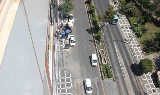 Yaklaşık 10-15 katlı binaların dış cephesinde çalışan işçiler, iskele veya vinç kullanılmadan sadece ip sistemleriyle görevlerini yerine getiriyor. Tehlikeli olduğu kadar dikkat gerektiren bu işte görev alan çalışanlar, mesailerini büyük bir titizlikle sürdürüyor. "Endüstriyel dağcılık" olarak tanımladıkları meslekleri kapsamında dış cephe temizliği, dış cephe boya işleri, kaplama ve bakım işlerini yapan işçiler, bu yöntemle hem çevreye zarar vermediklerini hem de gürültü oluşturmadıklarını ifade etti. "Korku nedir bilmiyoruz" diyen işçiler, sıfır hata ile çalışmaya özen gösterdiklerini vurguladı.
