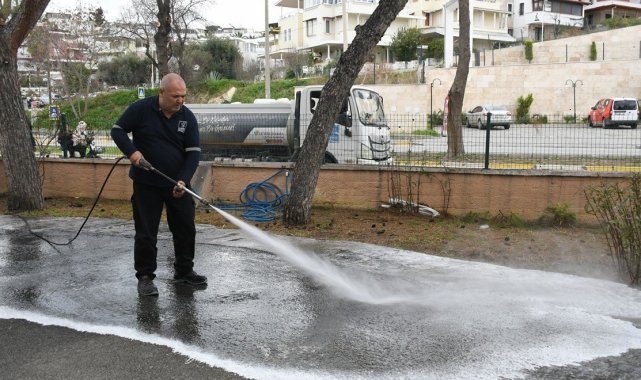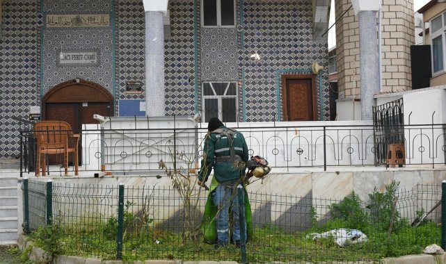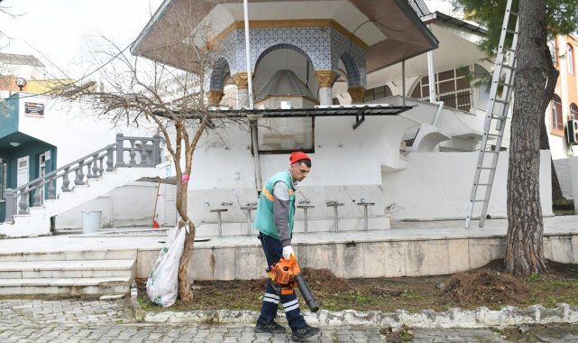 Sabahın erken saatlerinden itibaren sahada görev yapan Kuşadası Belediyesi ekipleri, vatandaşların temiz, bakımlı ve huzurlu ortamlarda ibadetlerini yerine getirebilmesi için çalışmalarını özveri ile sürdürüyor.