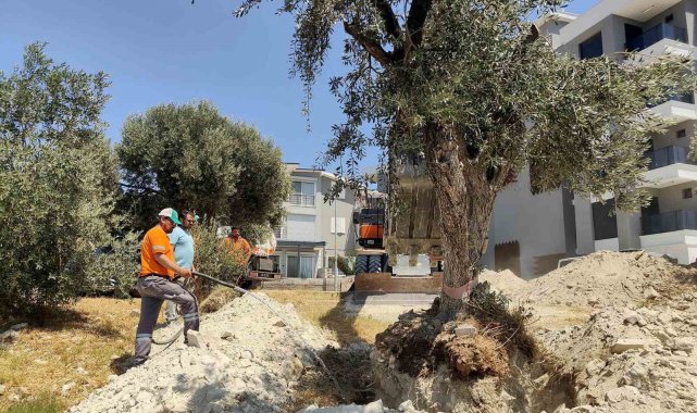 Kuşadası Belediyesi, kent genelinde sürdürülen alt ve üstyapı çalışmaları sırasında, kesilme riski taşıyan ağaçları koruma altına alarak farklı noktalardaki yeşil alanlara taşımaya devam ediyor.