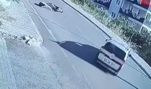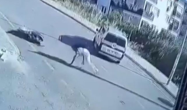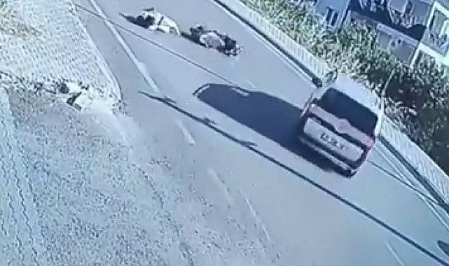 İki saat arayla meydana gelen kazalar güvenlik kameralarına anbean yansırken, görüntülerde caddeye bağlanmak isteyen araçları bir anda karşılarında gören motosiklet sürücülerinin panik fren yapması sonucu yere savrulması yer aldı.