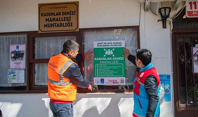 Kuşadası'nda afet toplanma alanlarıyla ilgili afişli bilgilendirme