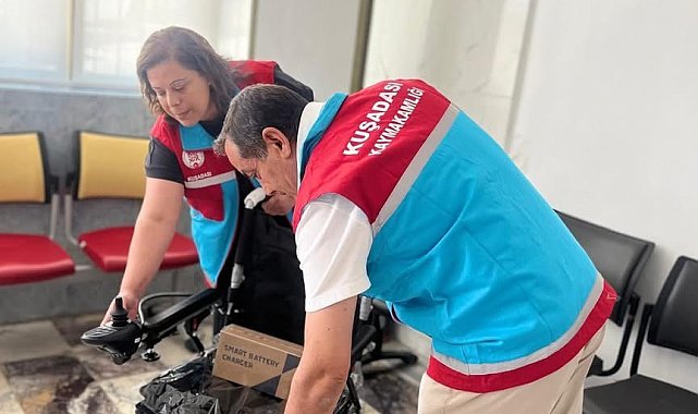 Aydın'ın Kuşadası ilçesinde bir inşaat firması tarafından Sosyal Yardımlaşma Vakfı'na bağışlanan 10 adet akülü tekerlekli sandalye, ilçede ihtiyaç sahibi vatandaşlara dağıtıldı.