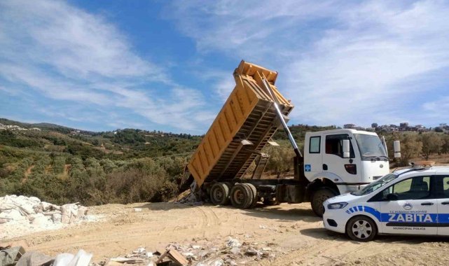 Kuşadası'nda kaçak moloz döken kamyon sürücüsü suçüstü yakalandı