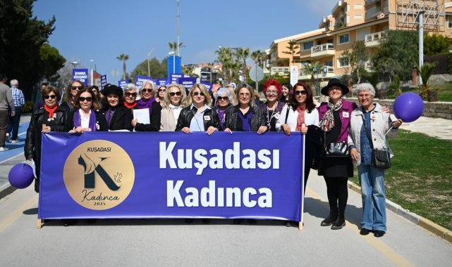 8 Mart Dünya Emekçi Kadınlar Günü kutlamaları, daha sonra Kısmet Otel Kavşağı'ndan başlayarak İsmail Cem Dostluk ve Barış Meydanı'nda sona eren kortej yürüyüşüyle devam etti. Bir çok sivil toplum kuruluşunun yer aldığı korteje Kuşadası Belediye Başkan Yardımcısı Ayşegül Dağlı ve Kuşadası Kadınca Oluşumu Onursal Başkanı Duygu Günel de katıldı. Renkli görüntülere sahne olan kortejde kadınlar, ellerinde taşıdıkları mor renkli dövizler ve attıkları sloganlarla Türkiye'de yaşanan kadın cinayetlerine ve kadına yönelik şiddete dikkat çekti.