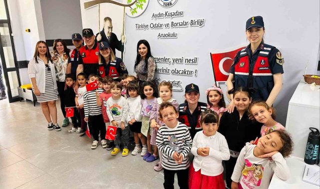 Aydın İl Jandarma Komutanlığı Aile içi Şiddetle Mücadele ve Çocuk Kısım Amirliği koordinesinde Çevre Timi (HAYDİ), Köpek Unsurları ve Kuşadası İlçe Jandarma Komutanlığı personellerince Kuşadası TOBB Anaokulu'nda öğrenim gören öğrencilere ve öğretmenlere Jandarma hakkında tanıtıcı bilgiler verildi.