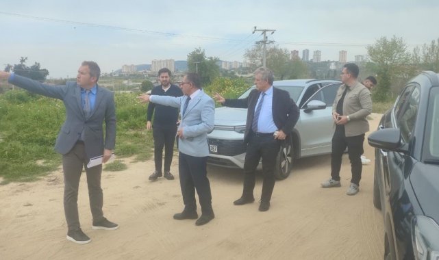 Kuşadası Kaymakamı İbrahim Keklik, İlçe Milli Eğitim Müdürü Şerafettin Yapıcı ve Şube Müdürü Serdar Kaymaz, Kuşadası'nda okul yapılması planlanan alanlarda incelemelerde bulundu.